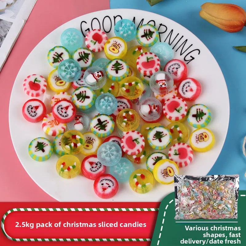 Bulk Santa-Theme Christmas Candy Fruit Slices Hard Texture Party Snacks Coated Decoration Fruity Flavor Available Bulk Bags